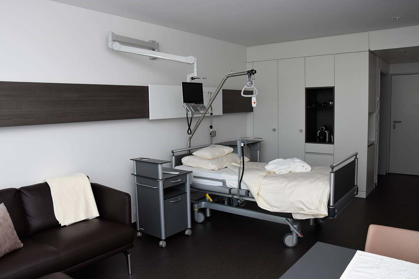 Zudem wurde im Mai 2018 die Renovation der Einerzimmer in der Privatabteilung abgeschlossen. Die Zimmer sind klimatisiert, verfügen über einen Gartensitzplatz mit direktem Zugang zum Park und sind ausgestattet mit grossem TV-Bildschirm, Minibar, Kaffeemaschine und Closomat.