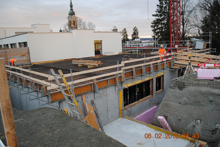 Die Arbeiten an der Feuertreppe schreiten voran, ebenso die Umgebungsarbeiten.